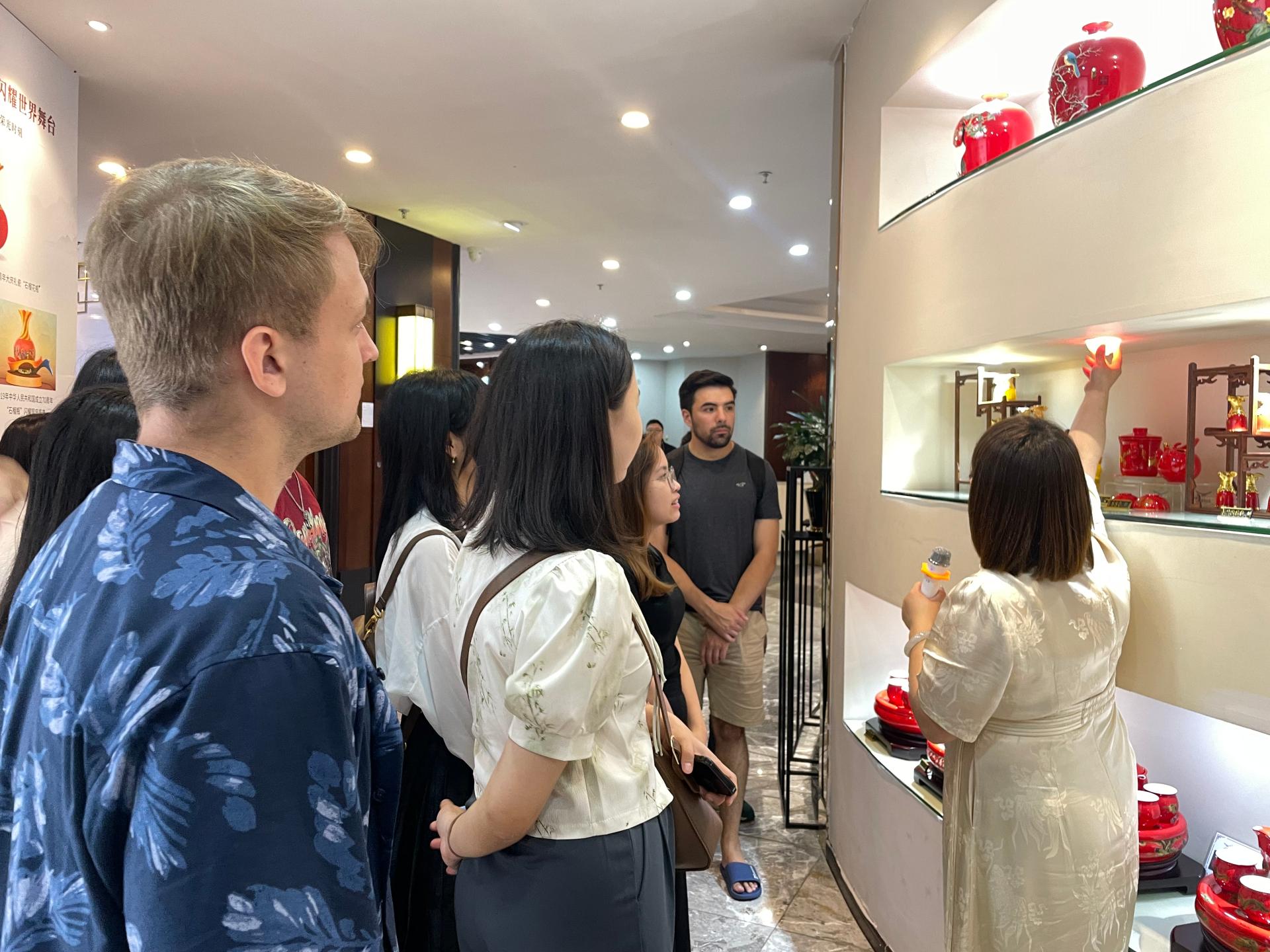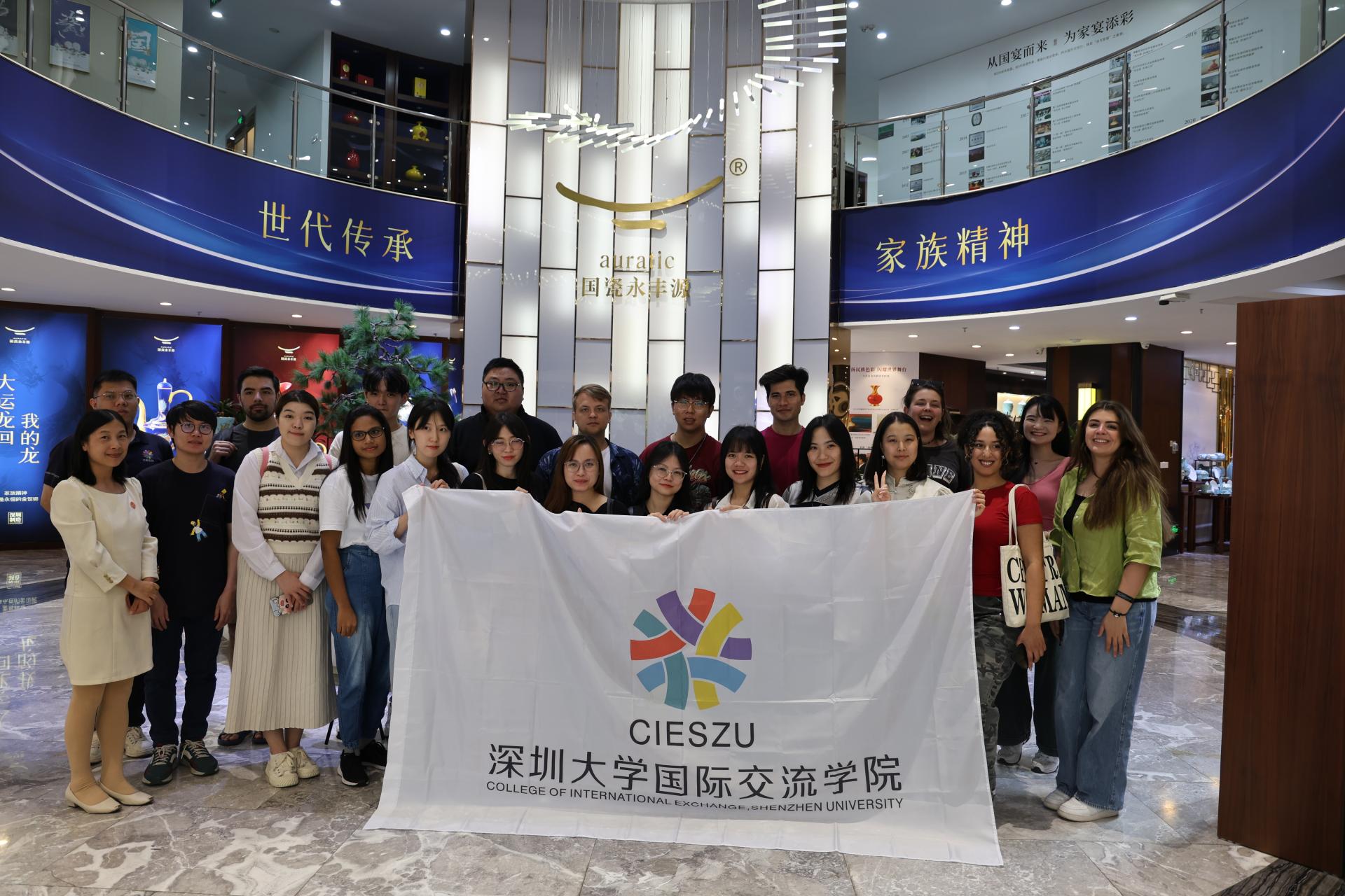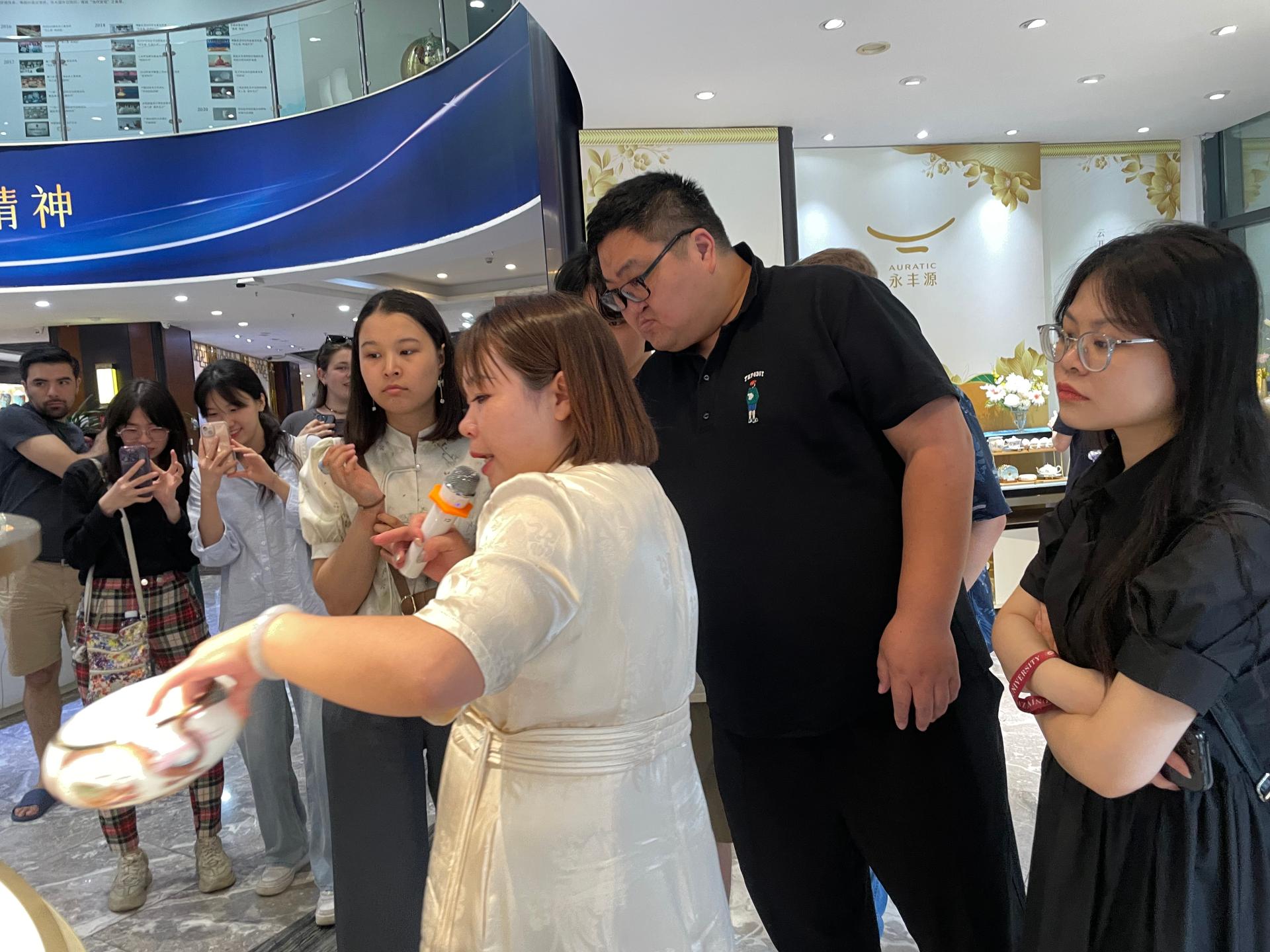 Then, the teachers and students came to the headquarter of Auratic. With its exquisite craftsmanship and design, China Yong feng yuan has successively contracted a number of China's home diplomatic banquets for porcelain, including important international events such as G20 Summit, BRICS Summit and Boao Forum for Asia. Through this walking tour, the teachers and students of the College of International Exchange of Shenzhen University were also able to closely appreciate the porcelain used for state banquets, which represents the model of flourishing Chinese ceramics, and experience the etiquette style of a large country and the beauty of ceramic design and manufacturing.