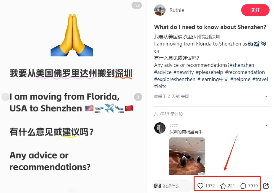 Among them, a special post Has caused a lot of attention from Shenzhen people, A student from Florida, Ruthie (Nu Xi), He said he will come to Shenzhen University to study abroad, She specially posted a message asking for some advice from Chinese netizens, Once the post was released, the praise comment thousand.