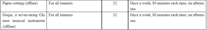 Offline courses: Chinese Calligraphy, Tea Culture, Papercutting, etc.