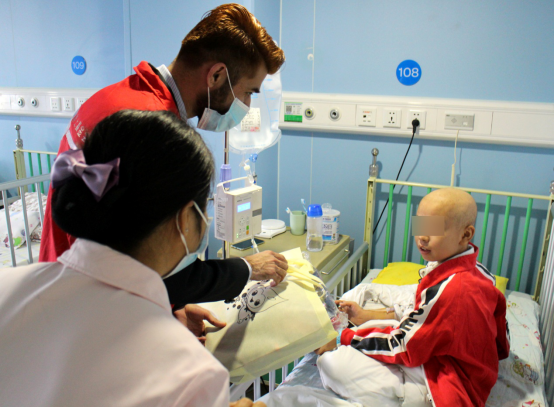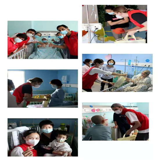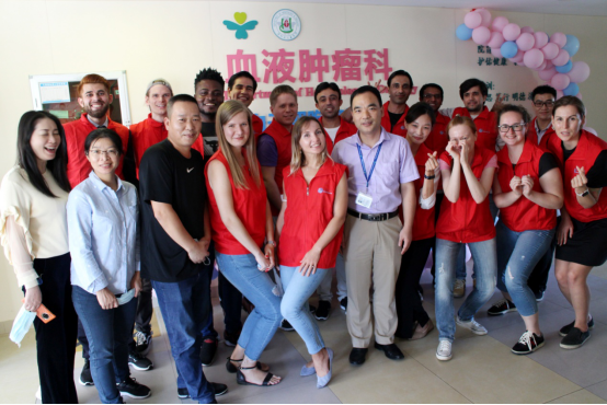 在血液科刘四喜主任的带领下,外国留学生志愿者们先后来到了血液科病区,为百余名患儿送去礼物。
