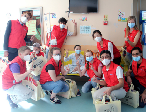 11月12日下午,深圳大学国际交流学院的留学生与崇上基金会的工作人员马不停蹄地赶到深圳儿童医院,医院血液科病房立刻充满了欢声笑语。来自波兰、土库曼斯坦、俄罗斯、巴基斯坦、克罗地亚、多哥、德国、捷克、墨西哥、乌克兰等国家的15位深圳大学国际交流学院外国留学生,化身志愿者,来到这里进行陪护服务。