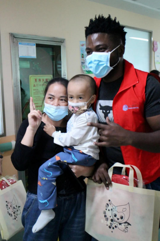 多哥的ABIDONOU KOFFIVI KOBOE因为黝黑的皮肤和阳光般灿烂的笑容成了全场大明星,他一走进病房就紧紧地吸引住了孩子们的目光,有的孩子因为好奇成了他的“跟屁虫”。他说,很高兴可以为孩子们加油打气,传递爱心,这将是他在中国最美好的一份回忆。