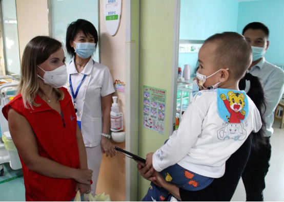 血液科张小玲医生,用流利的英语向15位国际留学生志愿者介绍儿童医院血液肿瘤科的情况,也分享这些孩子们勇敢可爱的一面。