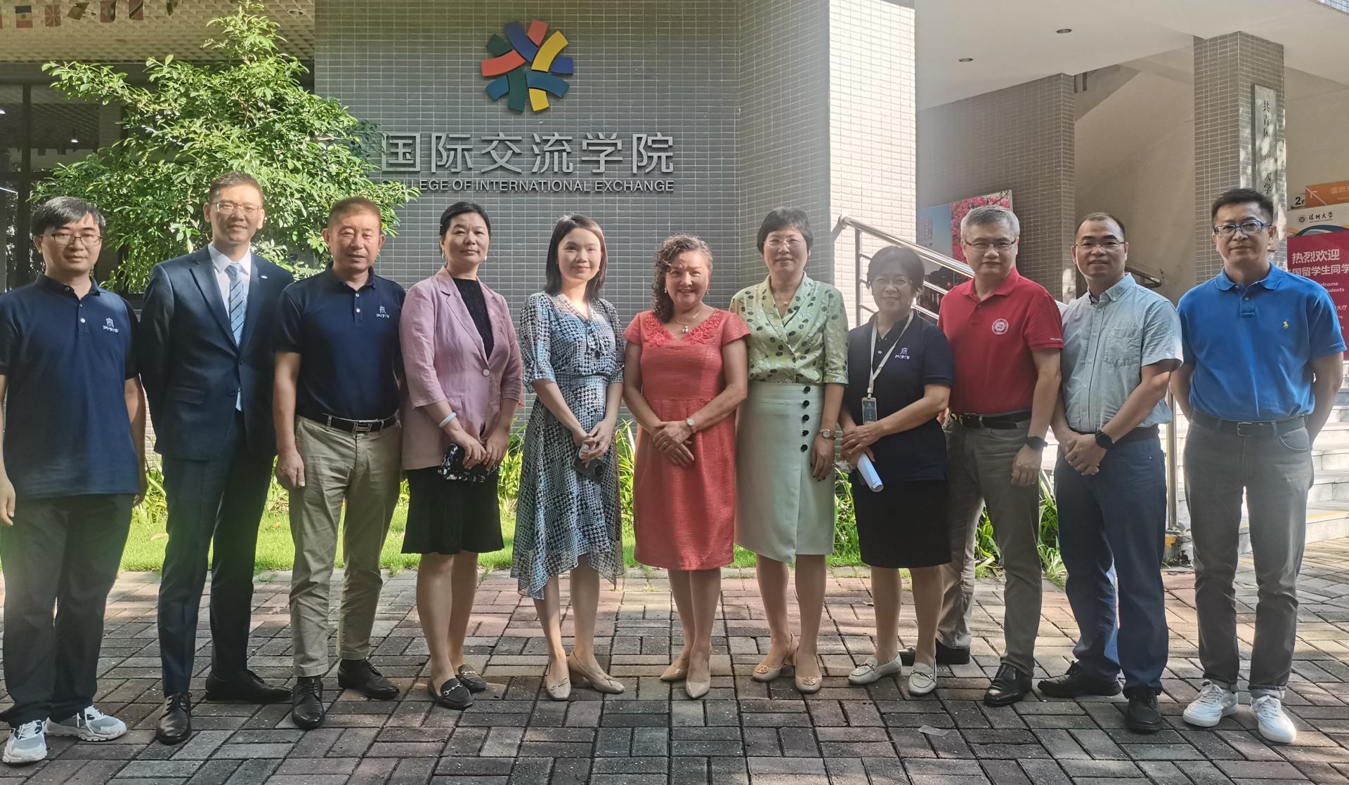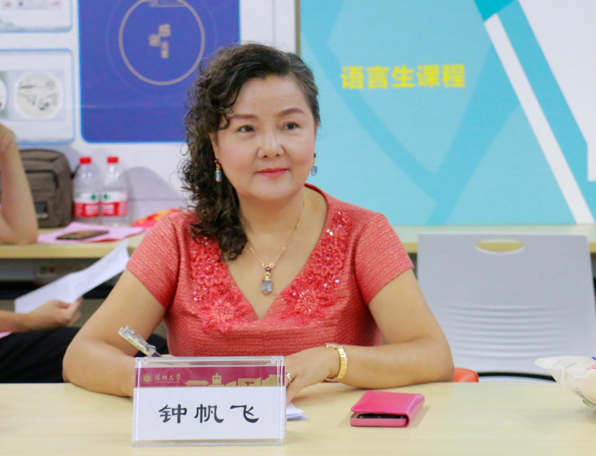 8月20日下午,深圳大学国际交流学院校企联合培养留学生研讨会在综合楼201教室召开。学院黄雪峰书记、潘燕春院长、杨爱姣副院长、古维副院长及学院系主任、行政部门等教师出席,参会的还有深圳市东方美术馆钟帆飞董事长、深圳市汉字教育科技有限公司高继成董事长、深圳市好日子皇冠假日酒店马国波经理(深大管理学院校友)、深圳市光明区明卓高教培训中心万兰芬校长、美国德克萨斯大学陈晓飞助理教授(深大人文学院校友)。杨爱姣副院长主持了会议。 首先潘燕春院长热情致辞,他再次肯定了疫情之后学院全体老师在教学方面所作的改革与创新,感谢企业为暑期班提供的各种支持与帮助,期待校企搭建更好平台,创造更多机会,共同为深圳地区留学生的培养助力。