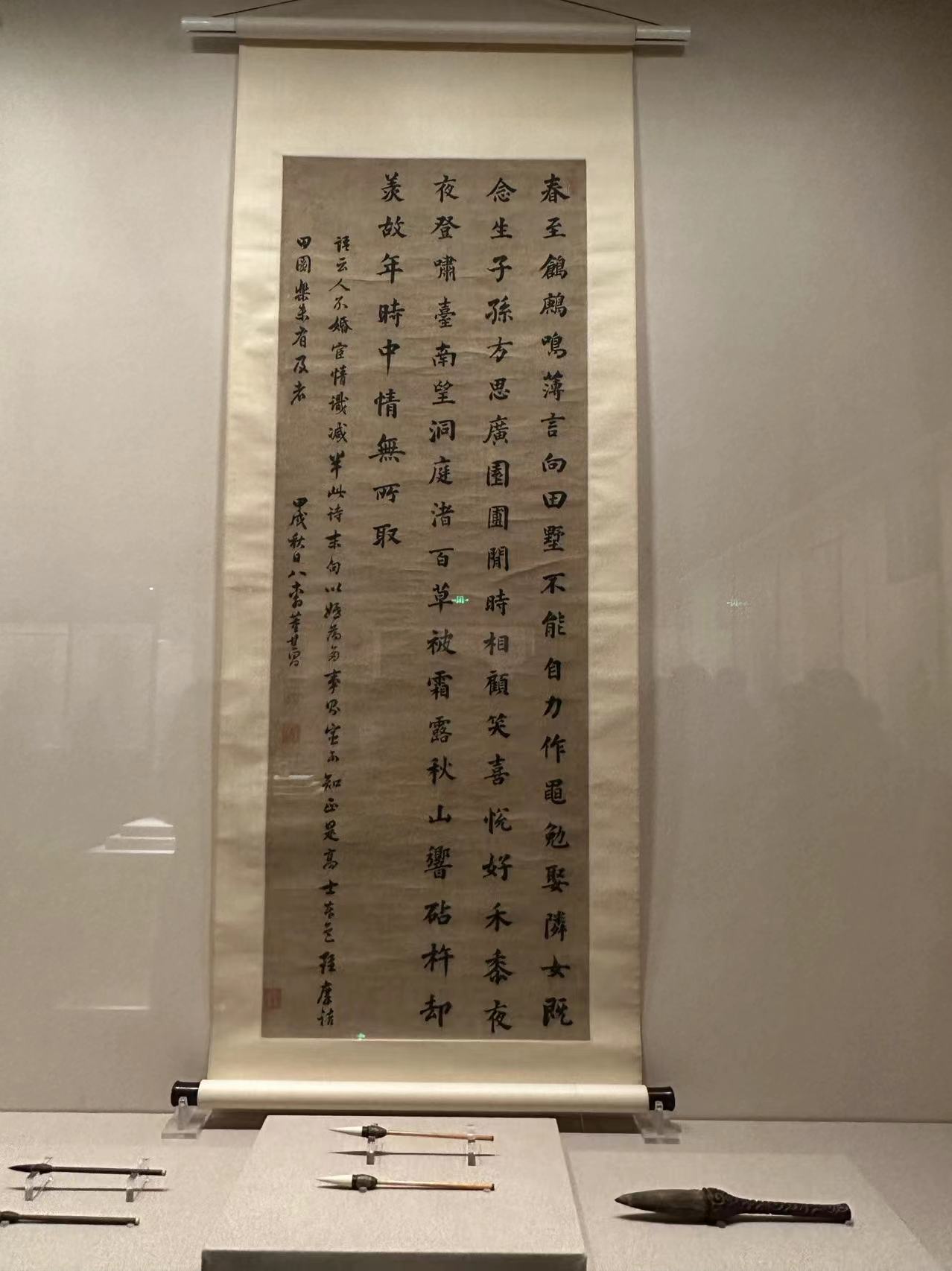 “翰墨雅赏——明清书画及文房清供特展”由南山博物馆和天津博物馆合作举办,展览精选天津博物馆馆藏的明清书画和笔、墨、纸、砚及其他文房清供百余件。器以载道,器物与艺术,分而成器合而成道,“笔墨纸砚”与书画呼应性的呈现,引领观众欣赏中国传统文化的魅力。