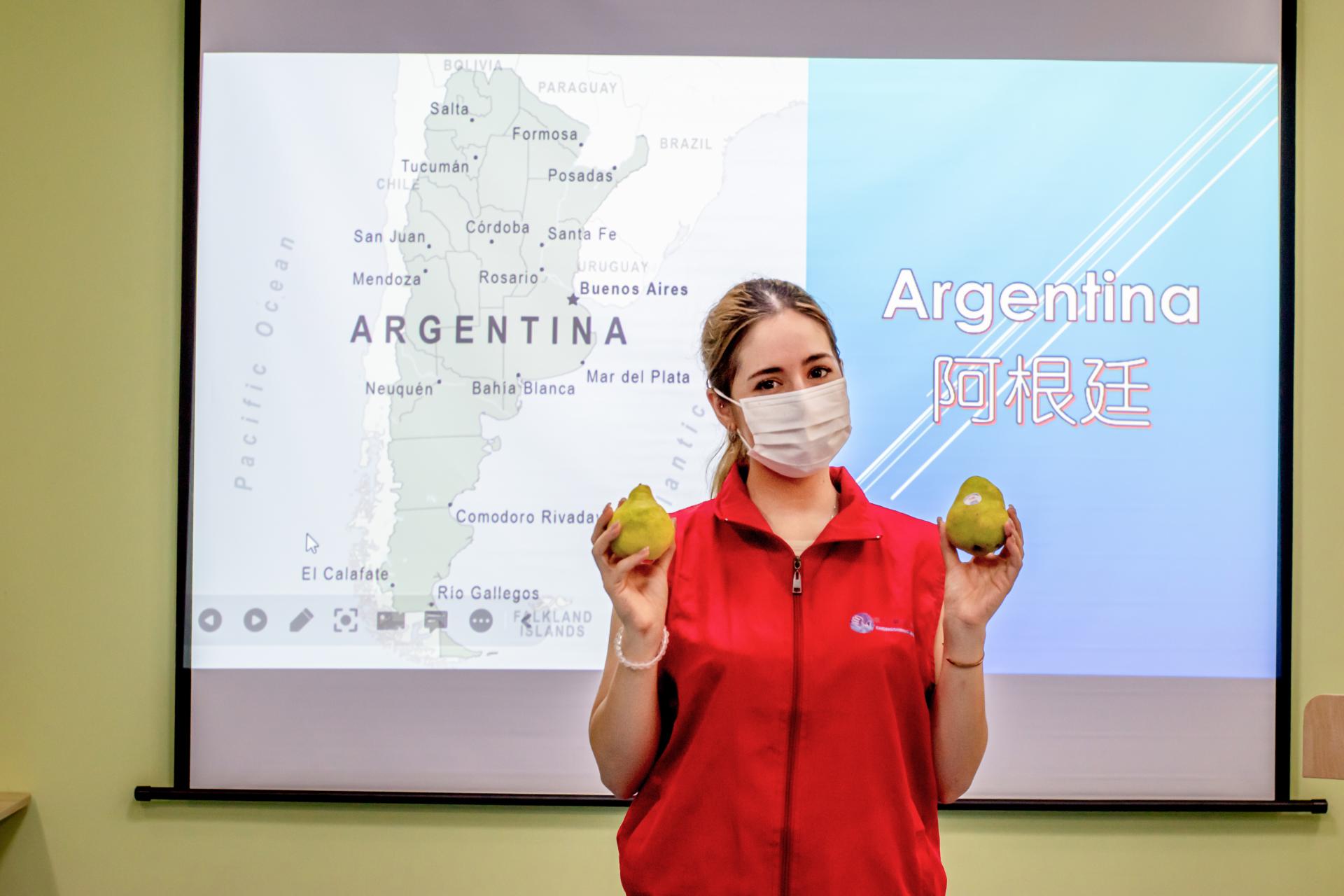活动组织方还特意精心准备了阿根廷的特产——阿根廷帕克梨,大家品尝着香甜可口的异国水果,课堂在其乐融融的氛围中结束。