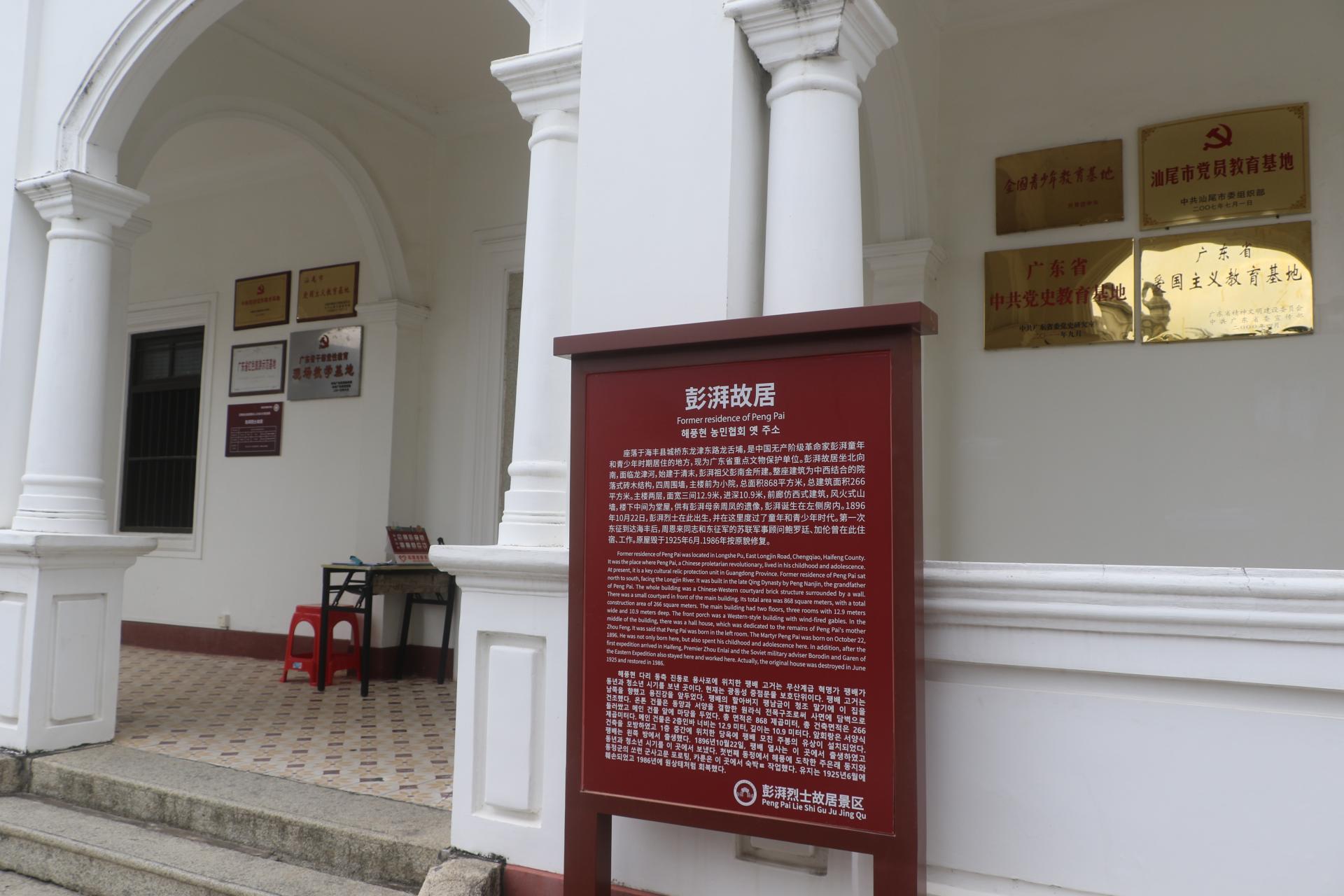 紧接着,全体人员前往彭湃烈士故居参观。故居坐落于风景秀丽的龙津河畔,始建于清末,主楼两层,是一座白色仿西式建筑。1896年,彭湃出生于此地,并在这里度过了其童年和少年时代。虽然出身大户人家,但是农村凋敝、农民贫苦的现实让他深刻了解到旧社会的腐朽和苦难。彭湃以其无私奉献的牺牲精神、廉洁尚德的为官作风和体恤百姓的大情大义,赢得了海陆丰大地上广大农民的衷心拥戴。
