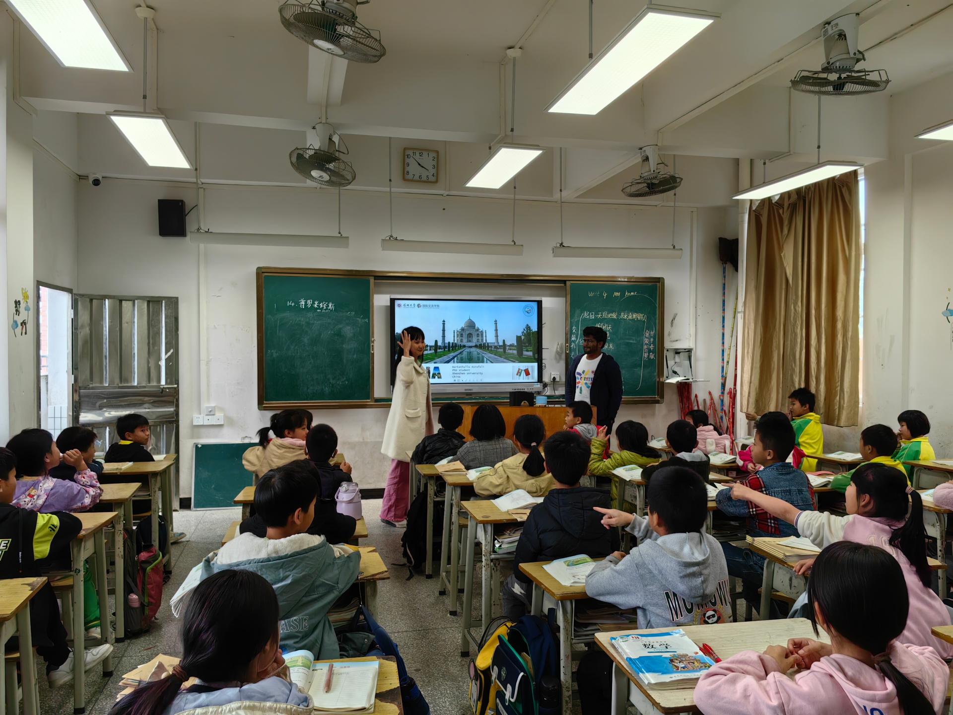 最后,同学们走进当地小学。刚踏入校门,同学们就受到了小学生们的热情欢迎。随后,经过一系列的准备之后,同学们进入小学课堂,与小学生们进行面对面的交流,向他们介绍世界的情况。
