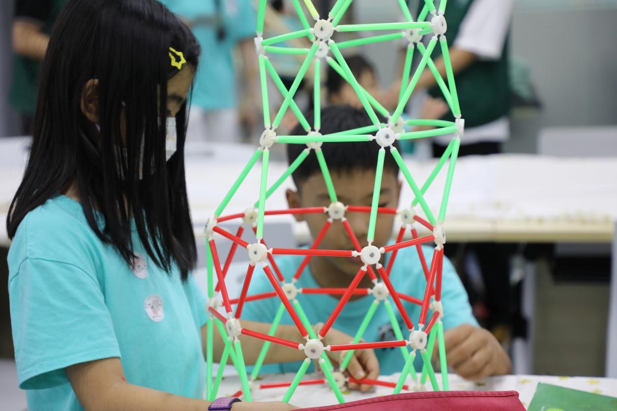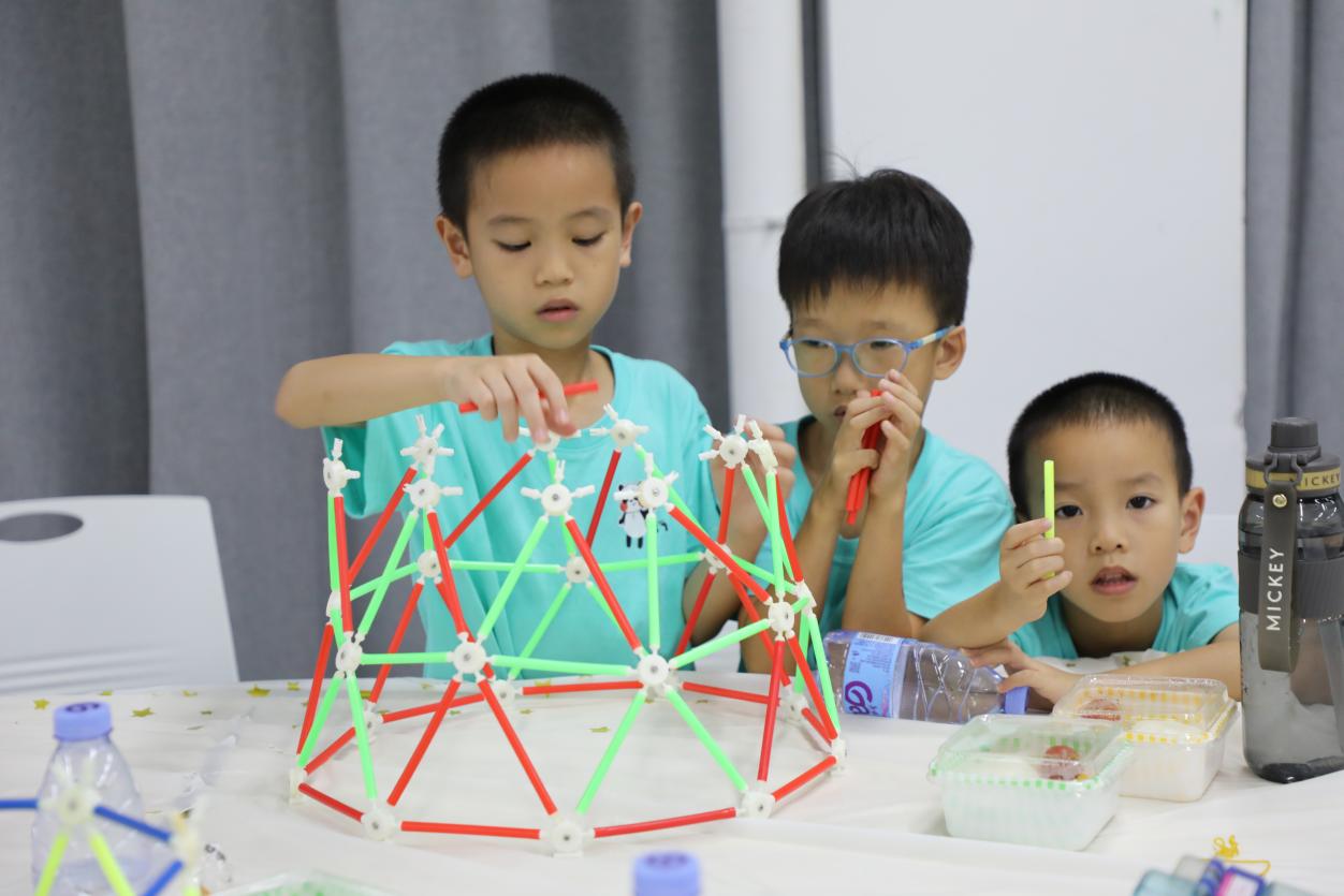 中午12:00至14:00,夏令营的最后一堂户外建筑小课堂——“火星住宅营造计划”如期举行。讲师以“移民火星”这一引人遐想的主题,激发了小朋友们对火星住宅建筑的浓厚兴趣,孩子们充分发挥想象力,进行了别出心裁的设计。紧接着,老师带领大小班小朋友们,共同运用两种长度的木杆件和两种3D打印节点,巧妙地搭建起了一个半球形的单层网壳结构建筑模型。望着自己亲手构建的“火星住宅”,小朋友们脸上洋溢着满满的成就感与喜悦的笑容。