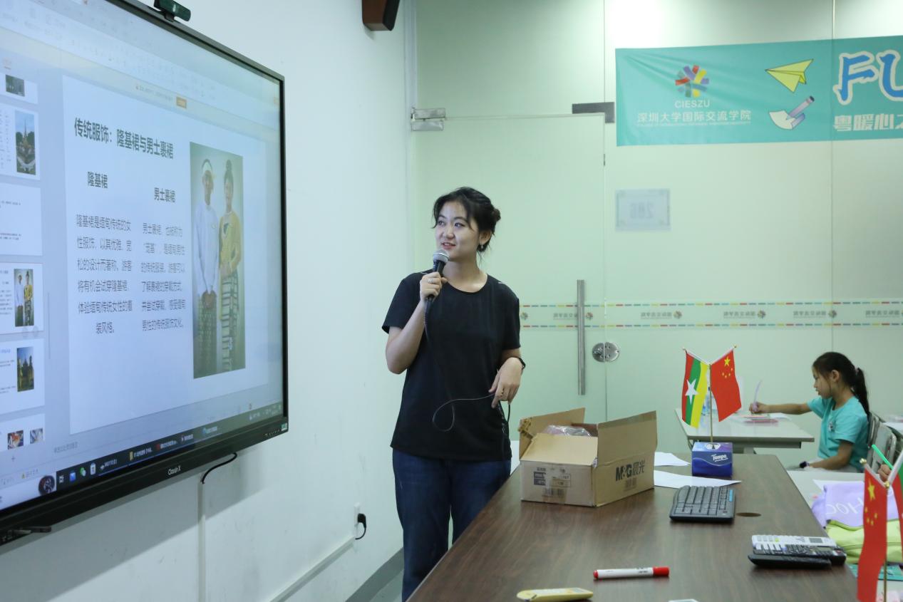 在同一时间段,大班的小朋友们正沉浸在缅甸的文化与传统之中。缅甸留学生李柯禧(AYE THINGYAN MAY)首先向小朋友们介绍了缅甸的国旗、地理位置、传统民族与服饰等基本信息,带领他们走进这个神秘国度的初步认识。紧接着,柯禧老师教授了小朋友们缅甸语言中的常用问候语,让他们初步体验了缅甸人的热情与友善。