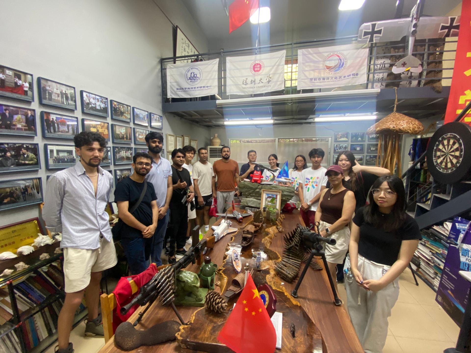 位于一楼的深圳大学海洋艺术研究中心,是中国首家以海洋艺术为核心的研究机构。这里汇聚了国内海洋学者、艺术家、古船专家和海图研究者的智慧与力量,致力于海洋文化艺术的研究与应用。中心不仅收藏了众多珍贵的海洋文物,还致力于中式帆船制作技艺的保护与传承,以及中国流失海外古船模的发掘与梳理。新生们在这里领略到了海洋的浩瀚与神秘,对海洋文化产生了浓厚的兴趣。