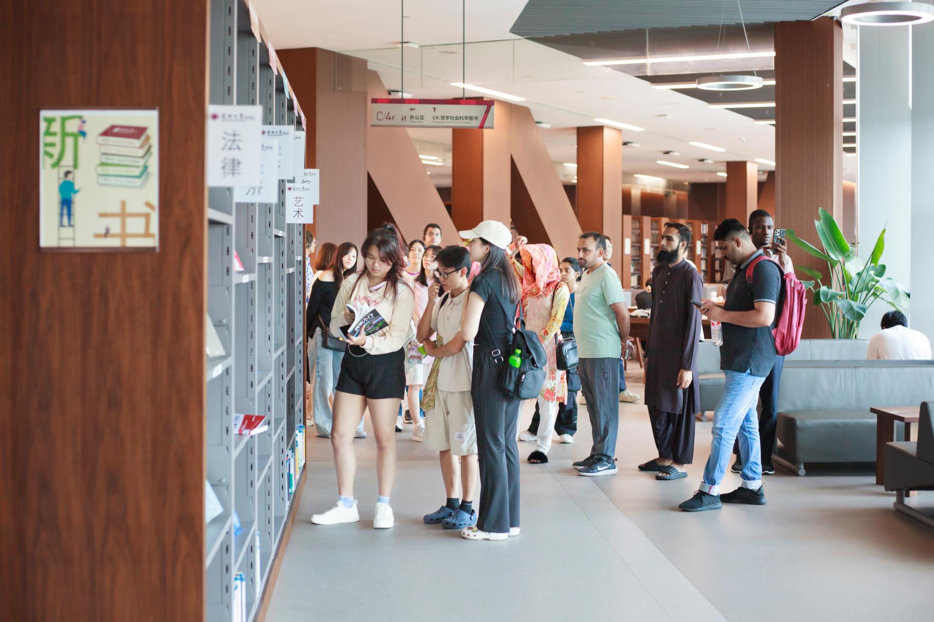 整个参观过程中,留学生们被图书馆所展现出的宏大气势、丰富馆藏以及前沿科技所深深吸引。他们或惊叹于书架间穿梭的机器人,或沉浸于书海中寻找知识的宝藏,或彼此交流着内心的感动与收获。这场跨越文化的交流盛宴,不仅让留学生们领略到了中国文化的博大精深,更激发了他们对知识的渴望与追求。