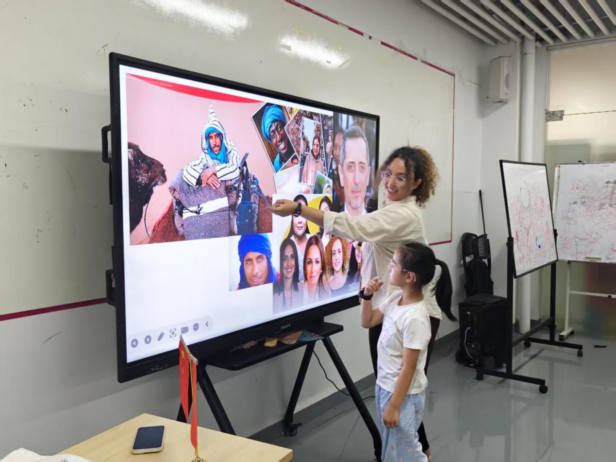 伊朗留学生索菲亚(EBRAHIMI MOHADDESEH)展示了这个古老文明的瑰宝。一个精彩的波斯故事引人入胜,随即孩子们沉浸在绚丽的几何图案绘画中。灵动的波斯舞蹈教学更是将气氛推向高潮,孩子们扭动腰肢,感受着丝路另一端的韵律节奏。