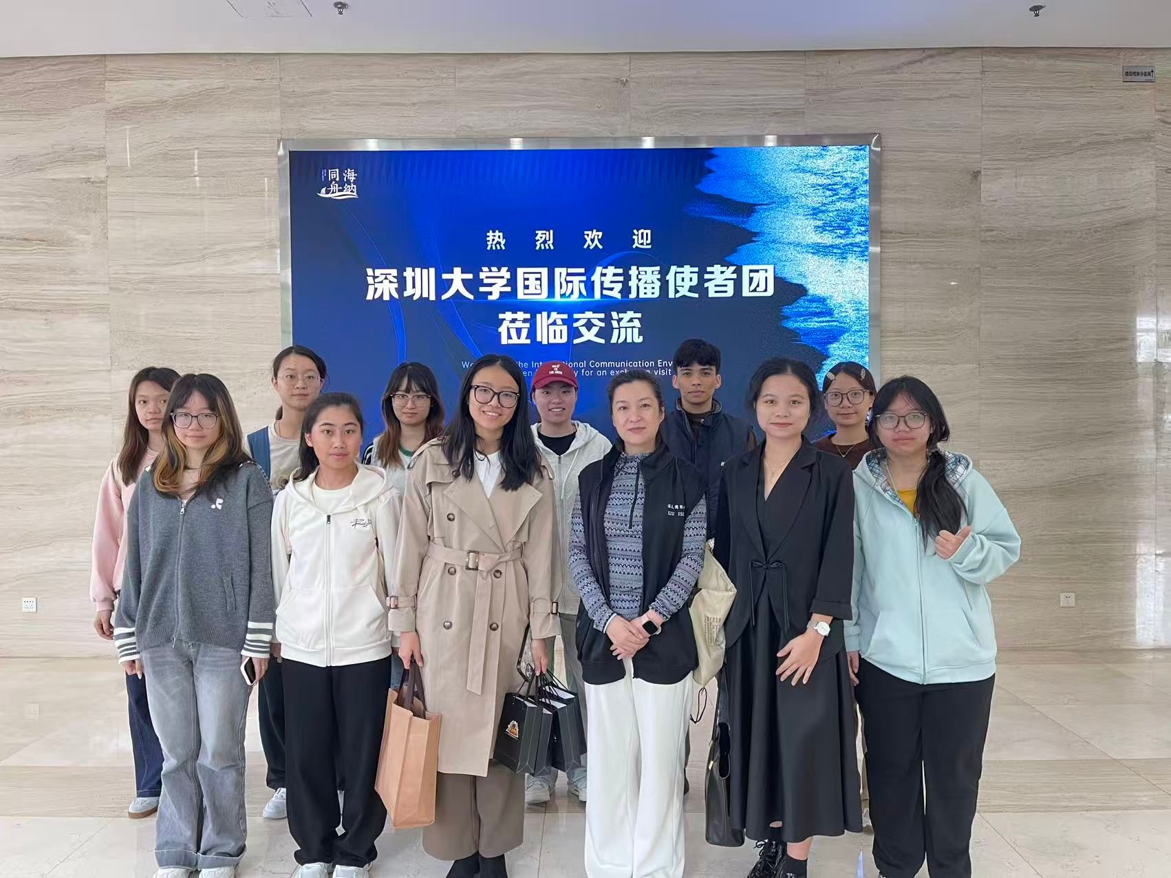 2025年11月14日,深圳大学国际交流学院组织红色文化国际使者团核心成员,前往深圳南山行业标杆企业海纳同舟开展参访交流。此次活动聚焦IP孵化与流量运营核心领域,助力成员将红色文化传播、跨文化交流等专业特色与行业实践结合,在沉浸式体验中拓宽视野,收获可落地的技能与认知升级。