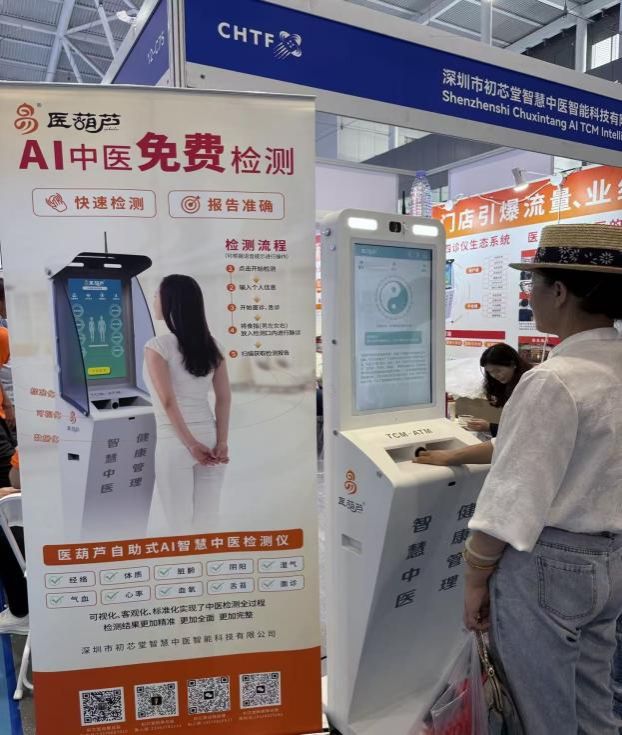 来自AI展区的人形机器人更是成为现场“明星”,它灵活的动作、拟人的交互让中外学子纷纷驻足,亲身感受到人工智能与机器人技术的突破性进展。而展区内的AI中医检测仪“医葫芦”则展现了传统中医与现代智能科技的融合,通过快速检测、报告分析,让大家看到了中医药现代化的创新路径。
