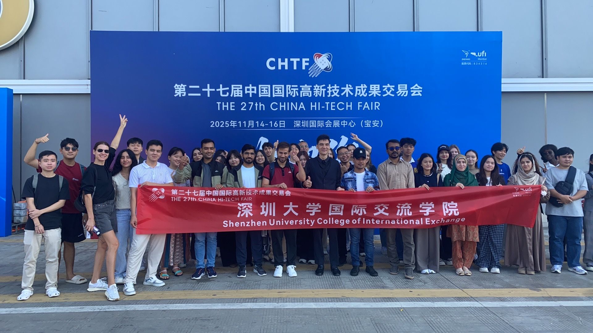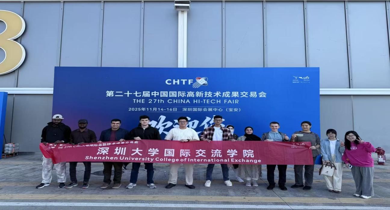 2025年11月15日,我院组织留学生走进深圳国际会展中心(宝安),沉浸式体验了第27届中国国际高新技术成果交易会(CHTF)的科技魅力。这场汇聚全球创新智慧的盛宴,让来自世界各地的学子们近距离感受到中国高新技术的蓬勃发展,在前沿科技的碰撞中拓宽了国际视野。