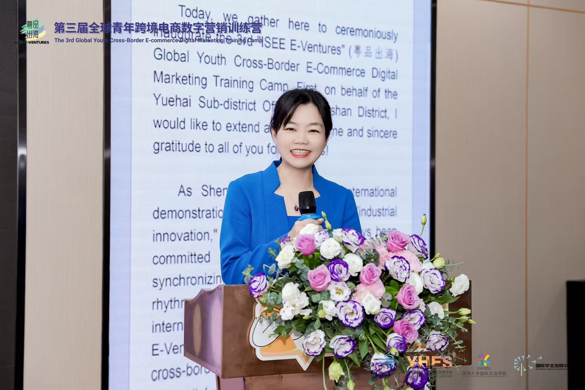 深圳大学国际交流学院副书记秦晴在致辞中,以“传承·创新、使命·担当、展望·赋能”勉励学员。她强调,跨境电商不仅是全球经济一体化的重要引擎,更是新时代青年“讲好中国故事、传播粤品魅力”的关键平台。