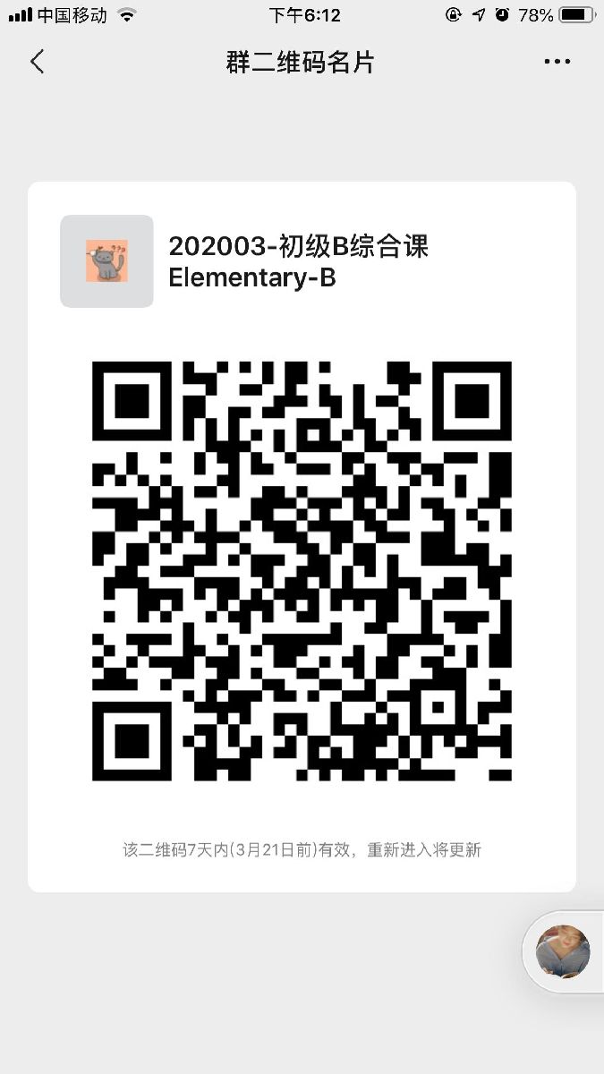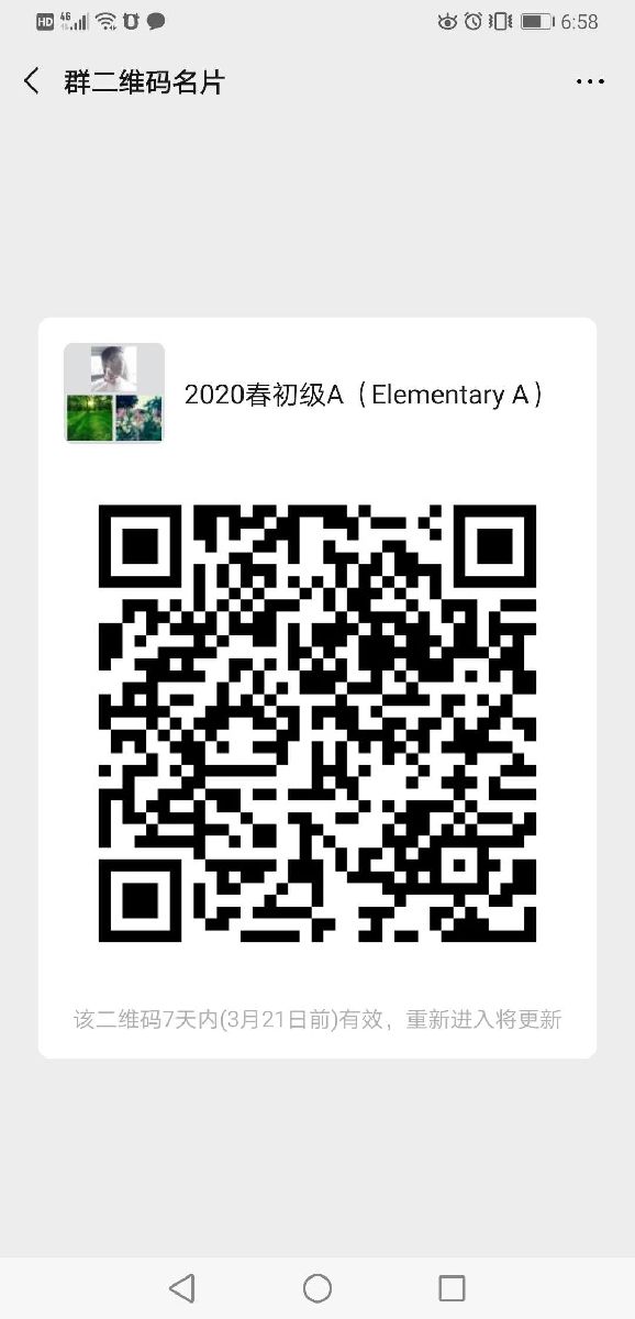 主选班级:入门A、入门B、初级A、初级B 时间:3月16日-3月20日