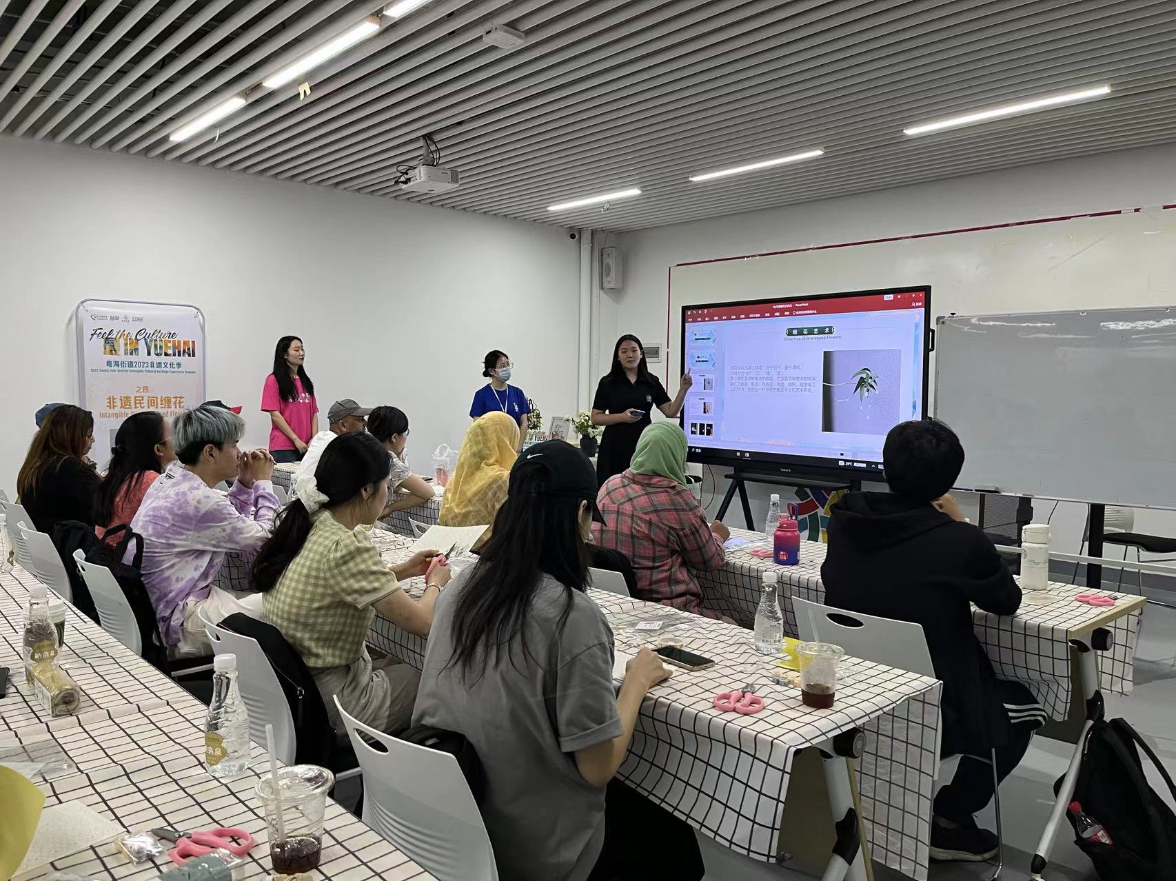 2023年11月2日下午,我校国际学生在朝夕楼201教室参加非遗文化体验活动:民间手工缠花。