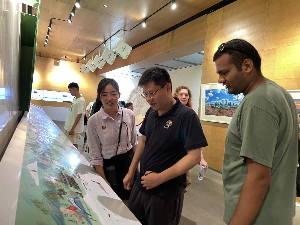 随后,师生一同参观了莲花山公园山顶展厅“公园里的深圳”影像汇展。参观现场,老师们给留学生详尽介绍了深圳公园发展相关情况,展现深圳山海连城、四季繁花的大美风范和城市新样态。