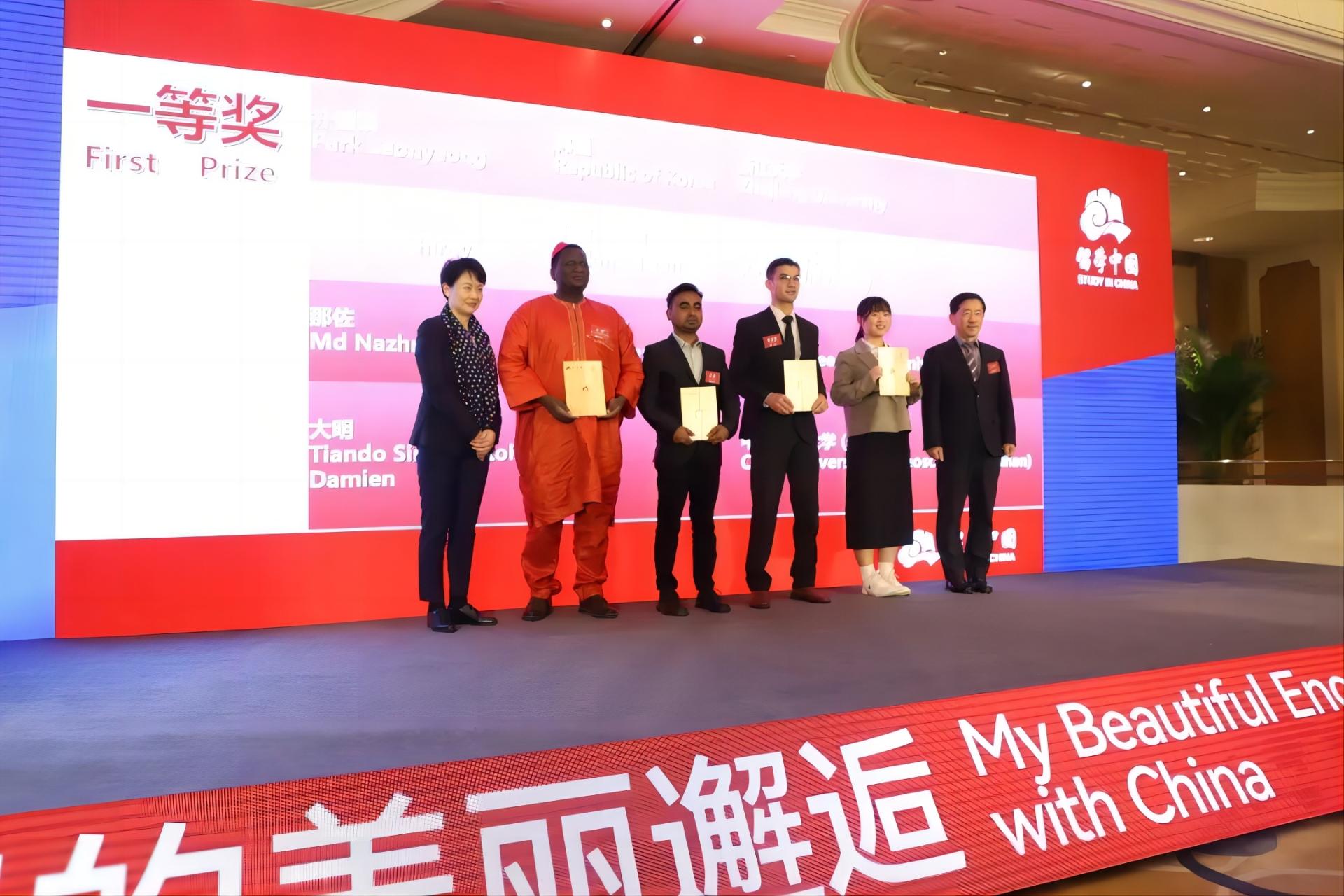 深圳大学博士生、留学中国“云”合唱团发起人、韩国籍来华留学生申文燮作为获奖学生代表,分享了留学中国“云”合唱团成立始末和代表作品的创作过程。他说,感谢大赛作为纽带连接起来自五湖四海的我们,留学中国“云”合唱团让来自世界各地的留学生通过音乐共话友谊。并表示,未来愿为韩中人文交流和世界和平友好贡献力量。