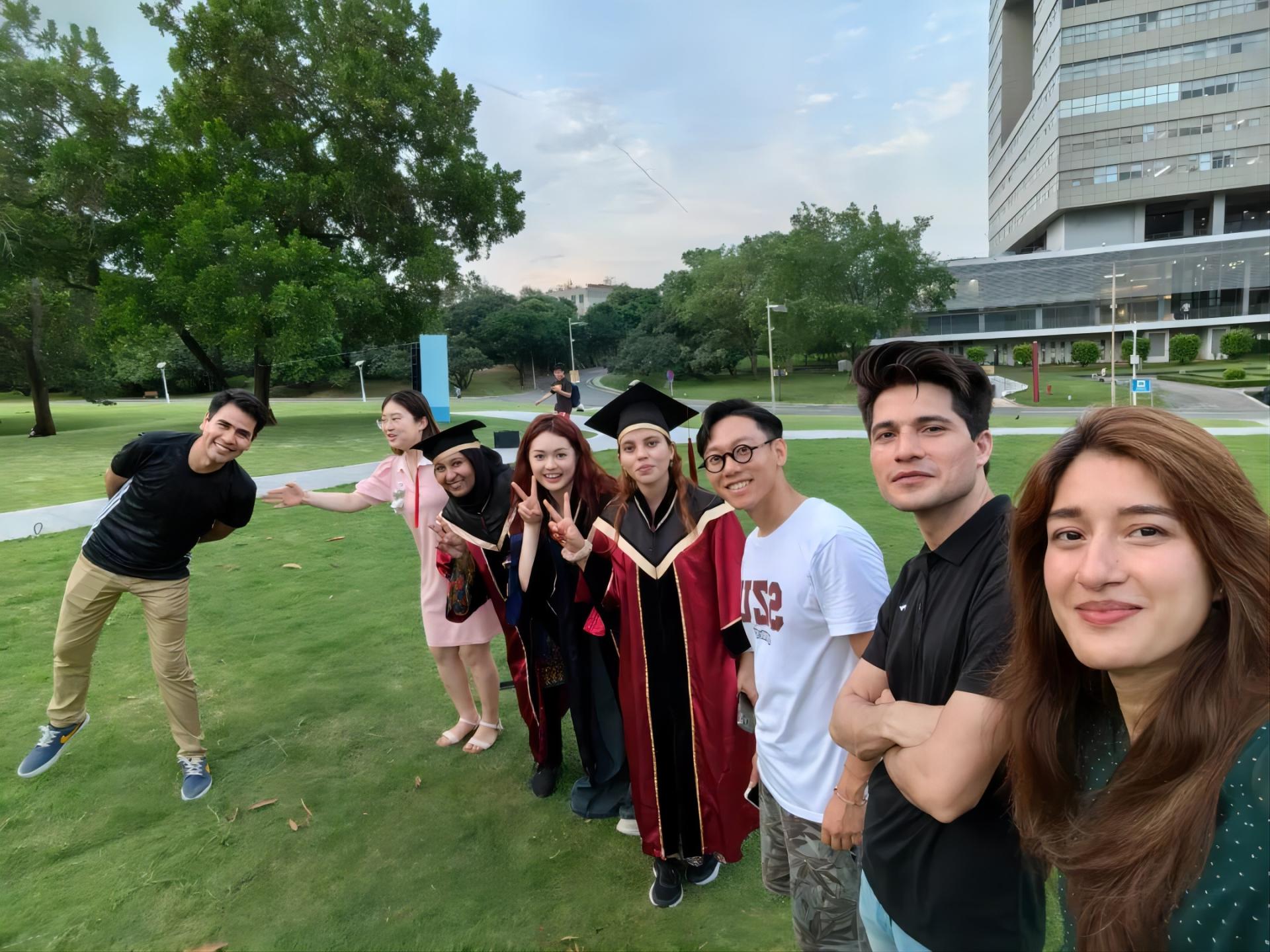 Some members of Shenzhen University International Choir pose for a music video in June.